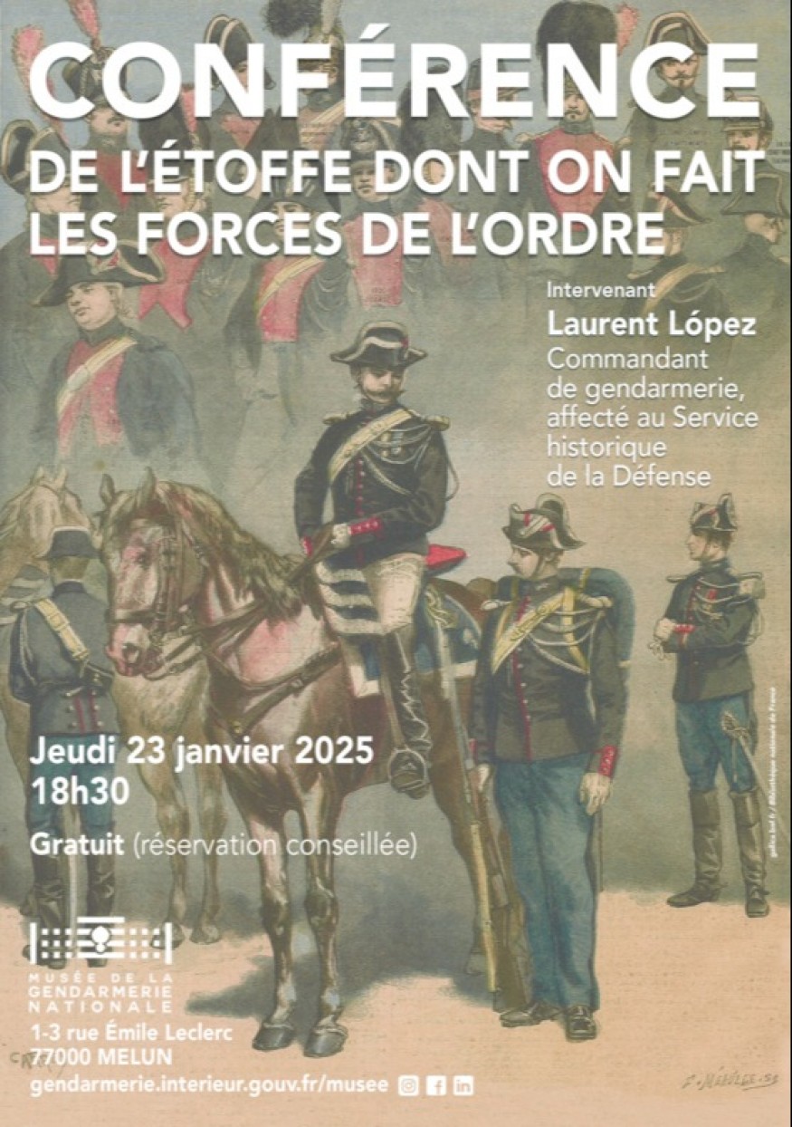 De l'étoffe dont on fait les forces de l'ordre, en conférence, ce jeudi à 18h30 au musée de la gendarmerie de Melun, gratuit avec réservations conseillées.