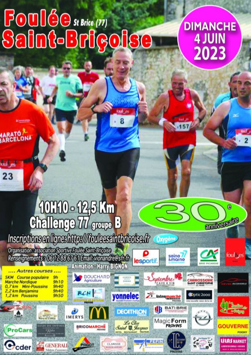 Le retour de la foulée saint briçoise dimanche. 30ème édition de ces courses ouvertes à tous, dans la nature près de Provins. 6 parcours proposés pour tous les âges. Avec le départ à 10h10 du 12,5 kilomètres. L'organisateur André Vion.