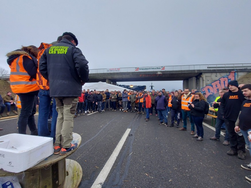 Les agriculteurs de Moselle, de l'Aisne et de la Meuse ont rejoint le cortège de Jossigny sur l'A4 aux alentours de 10h ce matin.