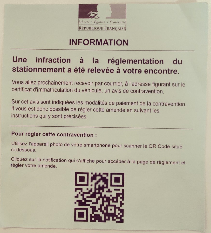 Les gendarmes de Seine-et-Marne alertent sur des arnaques aux faux PV de stationnement. Un papier sur le pare brise qui informe d'une contravention et un QR Code pour procéder au paiement. Il faut bien vérifier le site sur lequel vous êtes renvoyés... L'officiel c'est antai.gouv.fr.