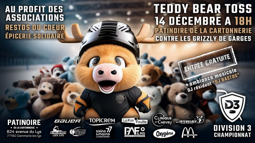 Du spectacle pour la bonne cause ce week-end sur une patinoire de Seine-et-Marne... Le club de hockey sur glace des Caribous de Dammarie-les-Lys organise, à l'occasion de la réception des Grizzly de Garges, le Teddy Bear Toss. Gildas Lebrun, Président du club.
