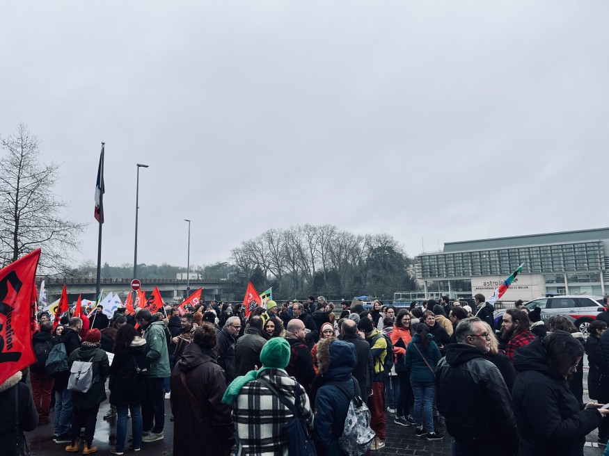 Quelques centaines d'enseignants et personnels d'établissements scolaires se sont retrouvés devant les services de l'Académie à Melun ce matin.