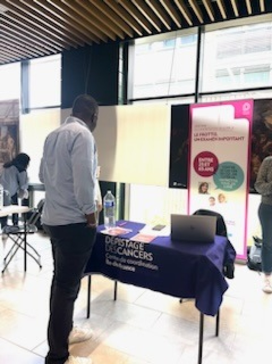 Sensibilisation au dépistage du cancer du col de l'utérus en ce moment. Des professionnels de santé tentent d'imposer juin vert, pour que le mois soit dédié à la lutte contre les papillomavirus. Des ateliers étaient récemment organisés dans le hall de l'hôpital de Fontainebleau, avec le docteur Tan-Trung Phan.