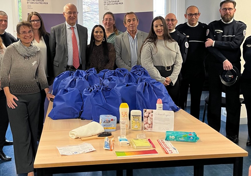 Les policiers et gendarmes de Seine-et-Marne ont reçu un kit d'urgence pour les femmes victimes de violences conjugales. L'association d'aides aux victimes AVIMEJ a déposé dans de nombreux commissariats et casernes de gendarmerie ces produits d'hyigène... Delphine Baccouche est directrice de l'association.